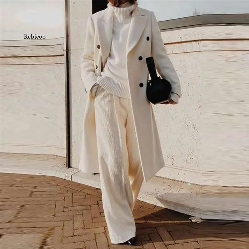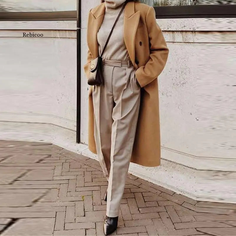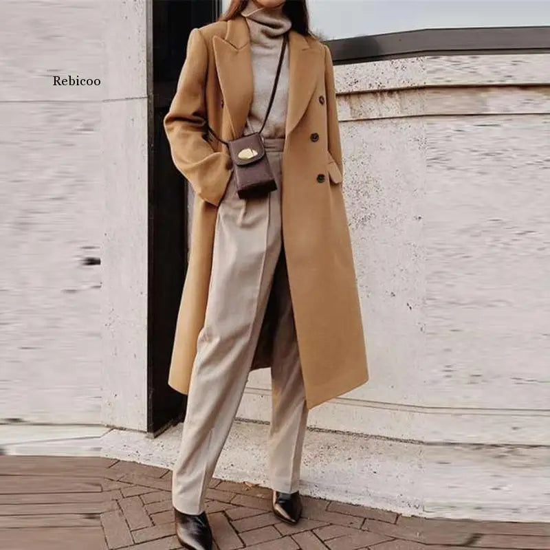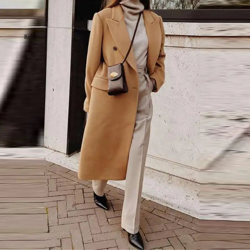 Transforme seu visual com o Casaco Feminino Longo de Lã Batida - Lily e aproveite o máximo de conforto e elegância!