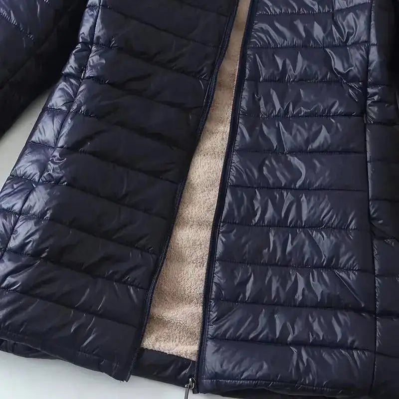 Combine o Casaco Impermeável Forrado de Lã com Zíper com leggings e botas de cano alto para um look confortável e estiloso. Nos dias mais frios, complemente o look com um cachecol ou um chapéu para um toque extra de charme.