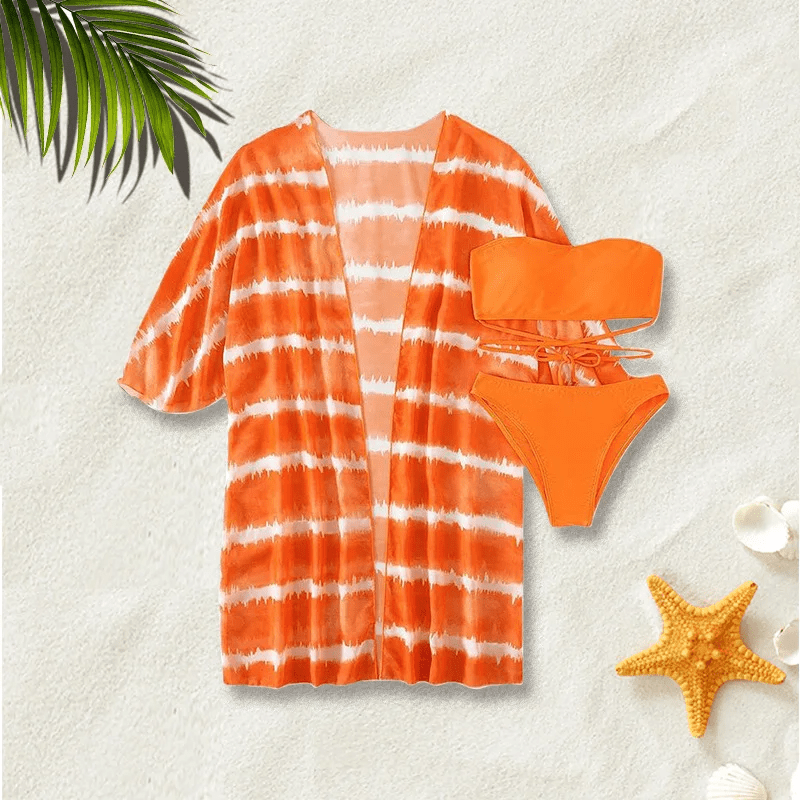 Conjunto Bianca é composto por um biquíni vibrante e uma saída de praia com design exclusivo. Perfeito para aproveitar a praia com estilo e conforto. Se destaque com este conjunto único e cheio de vida!