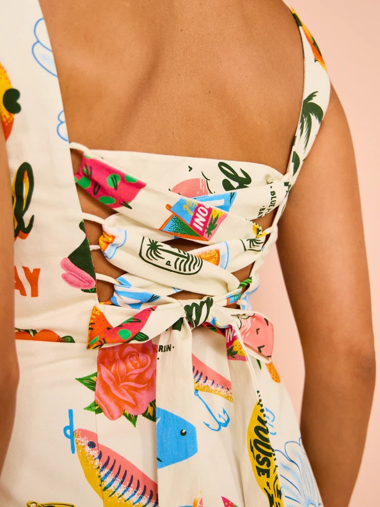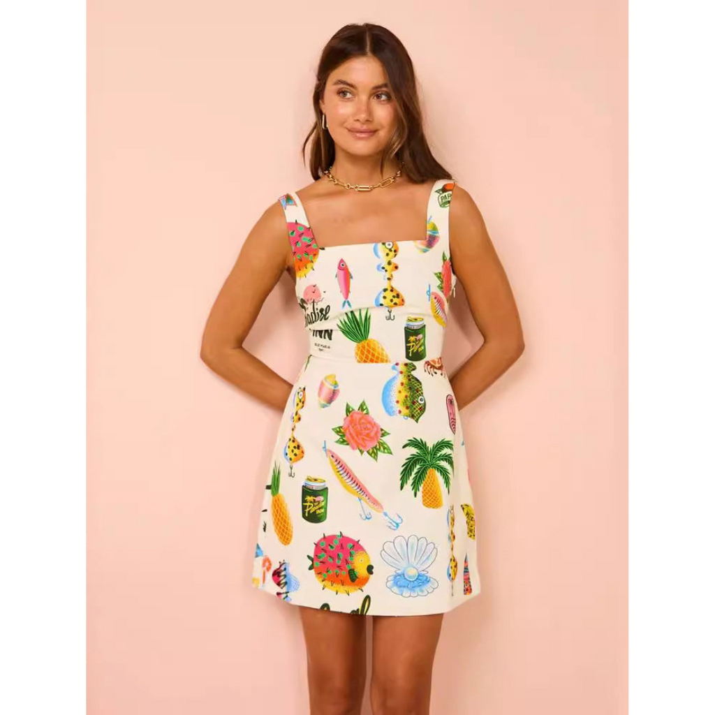 O Vestido Curto Estampado Tropical - Brunelle é a peça ideal para mulheres que buscam um visual divertido e estiloso para os dias quentes. Com uma estampa vibrante que inclui elementos tropicais como frutas, palmeiras e flores, este vestido é perfeito para festas de verão, passeios na praia e eventos casuais. Feito com tecido leve e respirável, ele oferece conforto durante todo o dia, mantendo você fresca e elegante.